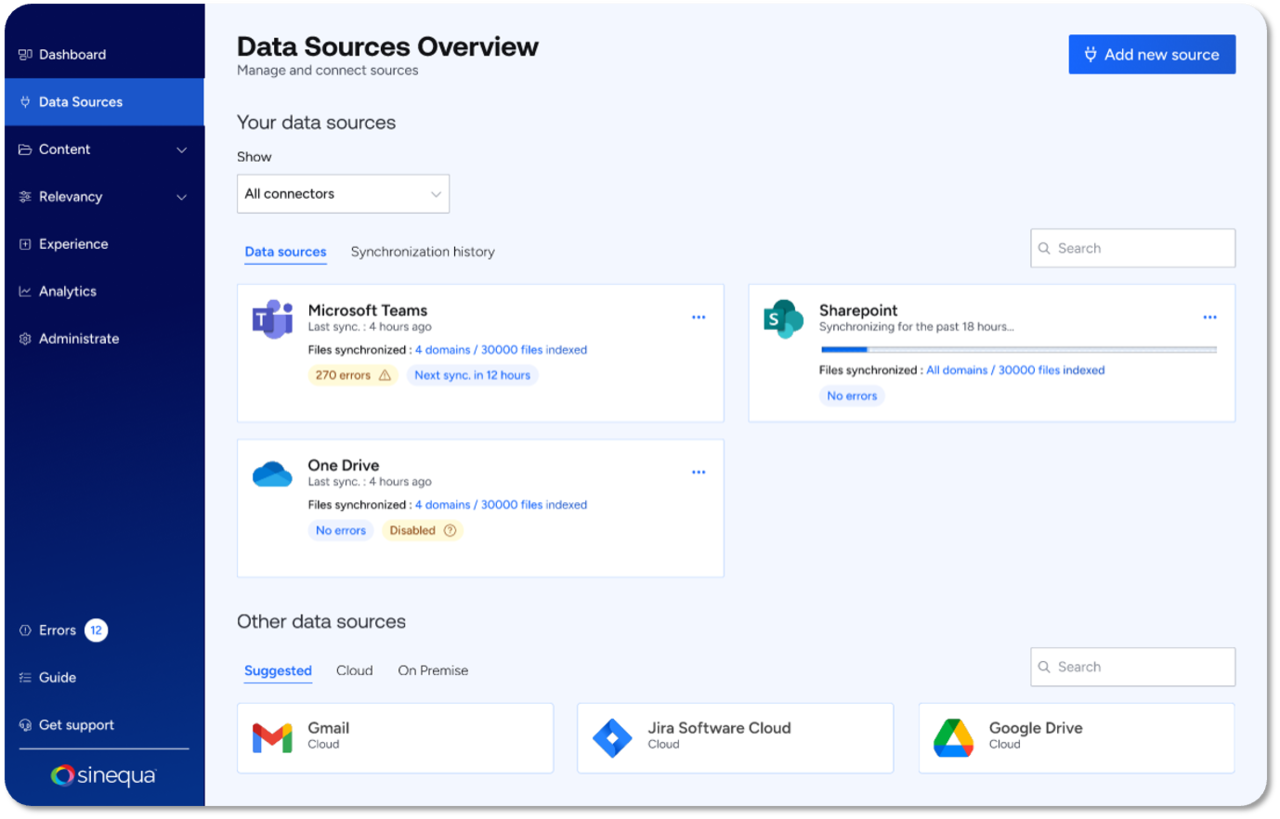 Sinequa의 엔터프라이즈 검색엔진은 AI와 자연어처리 기술을 기반으로 기업 내 방대한 데이터를 신속하고 정확하게 탐색하며,