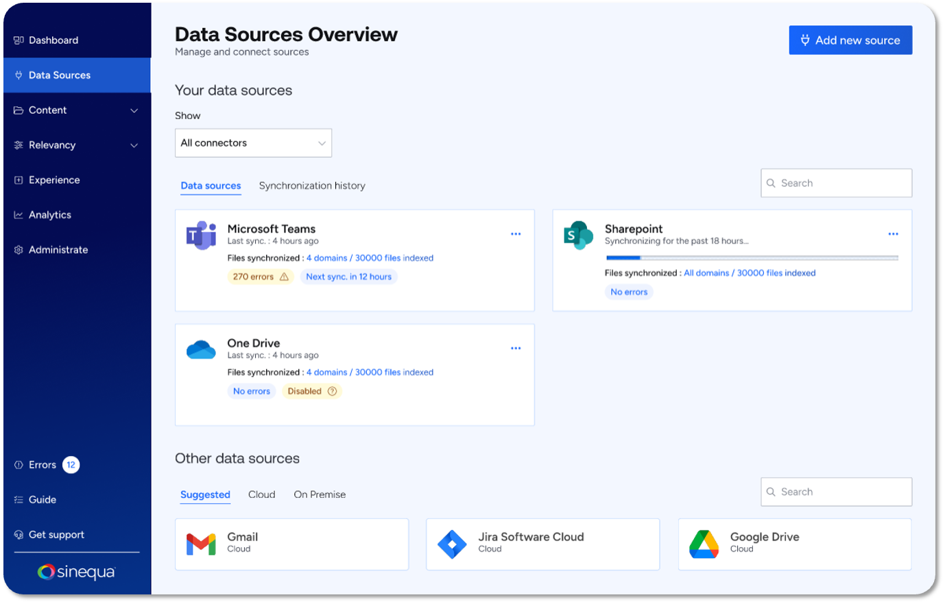 Sinequa의 엔터프라이즈 검색엔진은 AI와 자연어 처리 기술을 기반으로 기업 내 방대한 데이터를 신속하고 정확하게 탐색하며, 정보 접근성의 한계를 해결하고, 미래 지향적 AI·머신러닝 기술 연구를 통해 지속적으로 발전하고 있습니다.