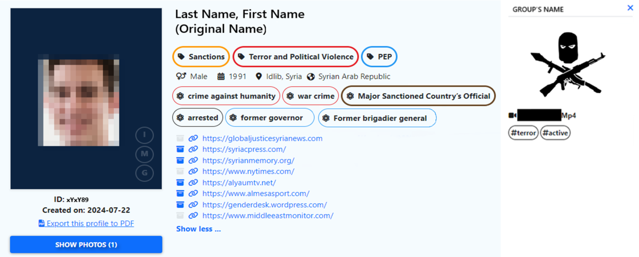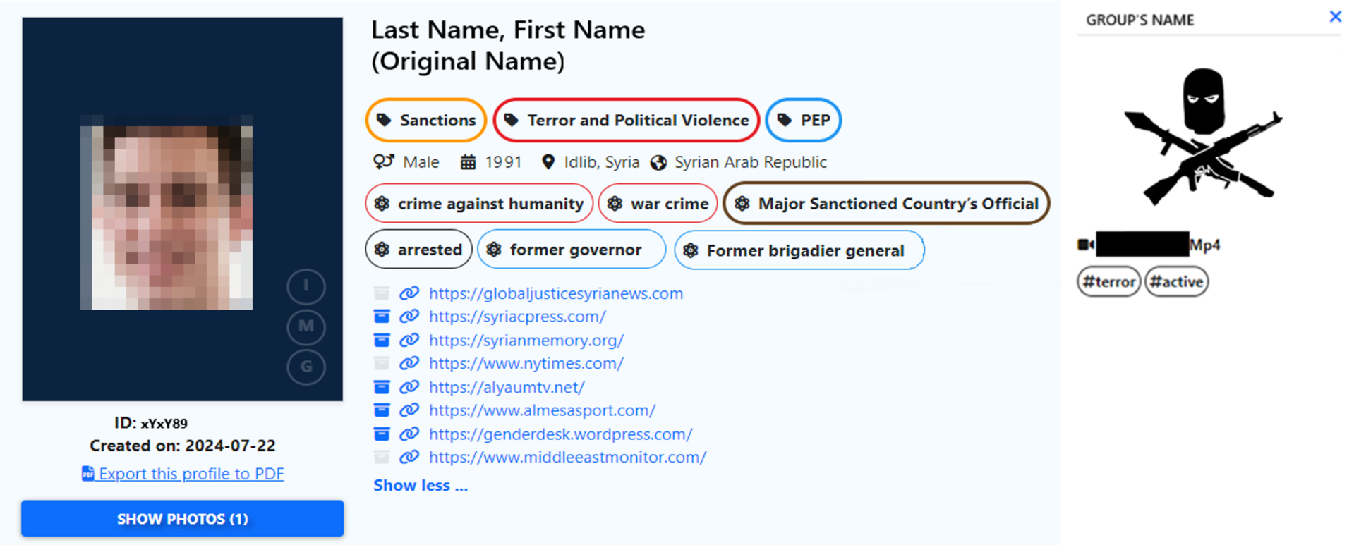 전 세계 240개국 이상의 제재 명단, 범죄자, 정치적 주요 인물(PEP) 등에 대한 방대한 사진 데이터와 분석 정보를 보유하여 고도화된 리스크 관리 환경을 제공합니다
